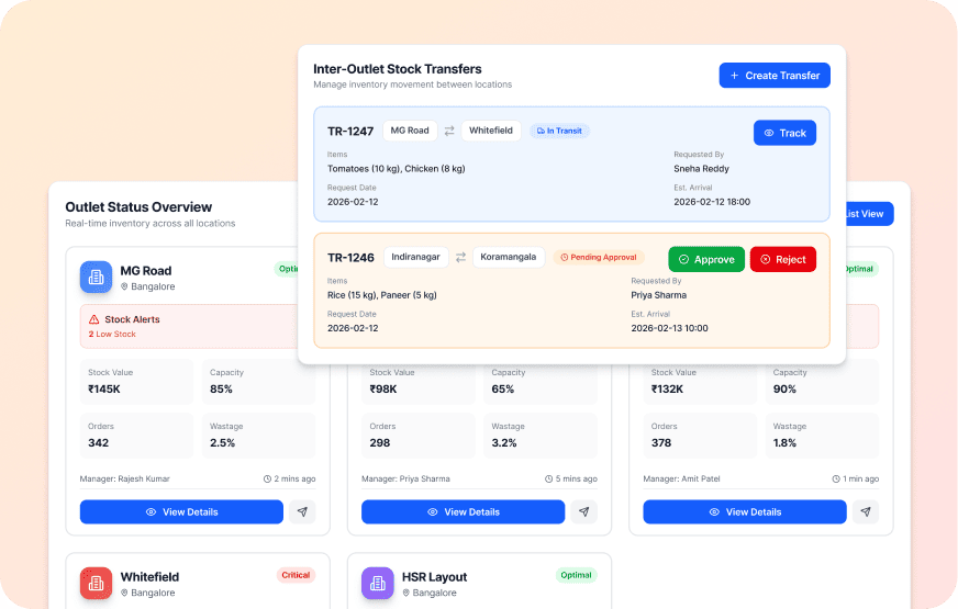 Control inventory for one restaurant or many locations from one central dashboard. Transfer stock smoothly and keep every outlet well supplied without chaos.