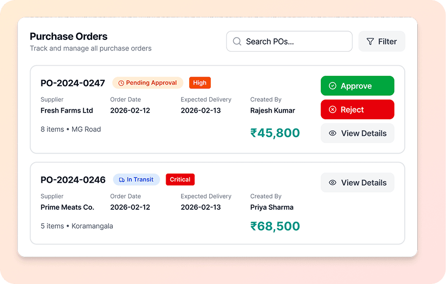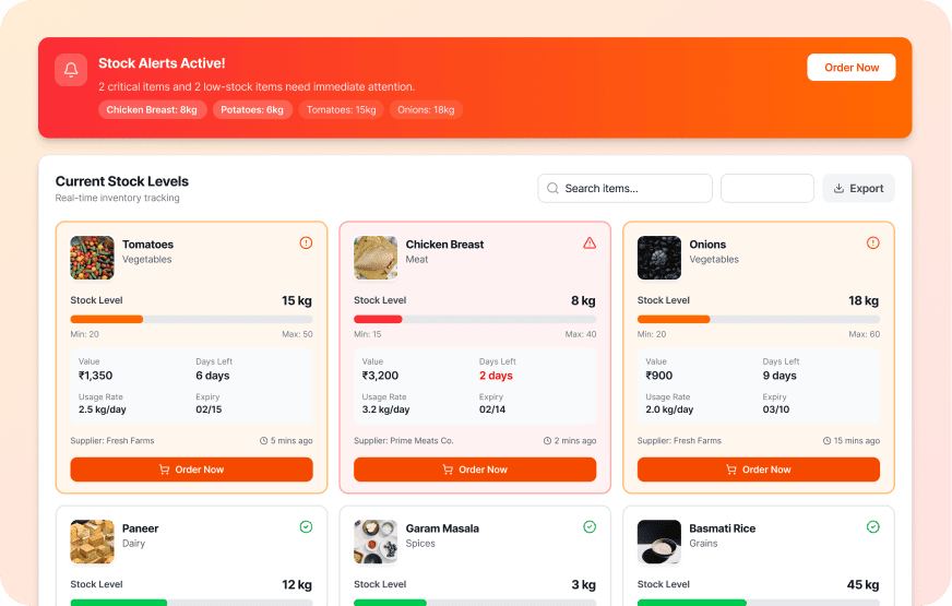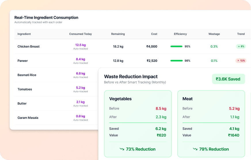 Get real-time updates on stock usage, wastage, and food costs. Clear reports help you reduce losses, plan better, and improve profitability every day.